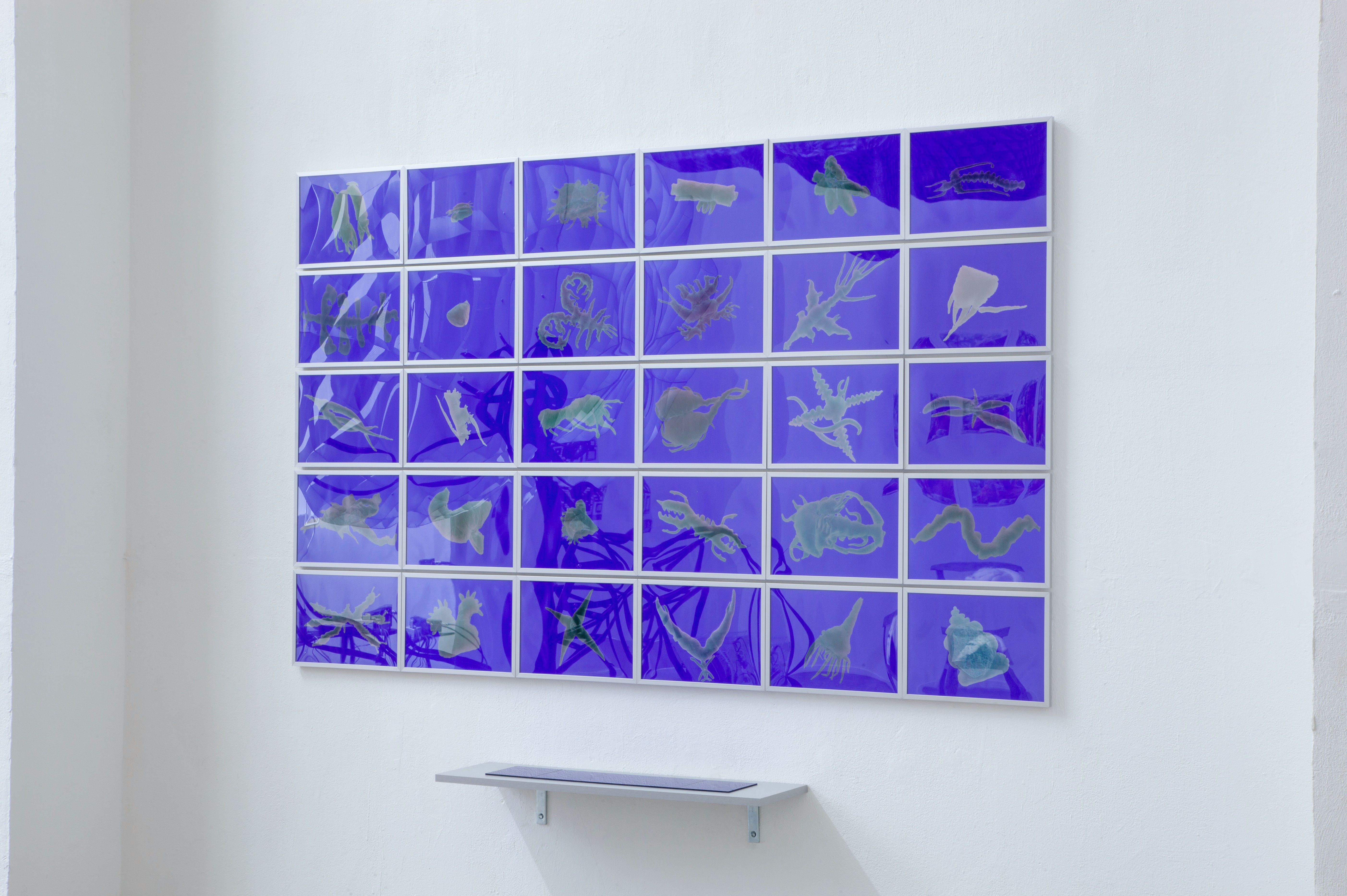 어느 날 밤, 다른 많은 날들과 마찬가지로 어름Eoreum에 대해 생각하다가, 나는 친구와 함께 라인강에 수영하러 갔다. 만져지는 것들이 내가 여기에 있다는 사실을 말해주는 것 같았기 때문에, 그리고 아무것도 제대로 보이지 않는 밤에는 몸 전체가 감각을 통해 깨어날 수 있을 것이라고 상상했기 때문에, 차가운 물과 어둠 속으로 들어가고 싶었던 것 같다. 나는 수영을 잘하지 못한다. 어느 순간 나는 패닉에 빠졌다. 물을 많이 마셨고, 허우적댔고, 가까스로 발이 닿는 곳으로 돌아왔다. 정신을 차렸을 때, 내 주위에는 동물들이 떠다니고 있었다. 그것들은 익숙한 종류의 동물은 아니었다. 나와 친구는 이상하게 생긴 그 동물들을 뭍으로 건져 올렸다. 그것들을 꺼내는 동안 동물들은 계속 작아지고 있었다. 친구가 사진을 찍었지만, 나는 작아지고 있는 이 동물들의 제대로 된 이미지를 남기고 싶어서 그것들을 작업실로 가져갔다. 그 사이에도 그것들은 계속 줄어들었고, 결국 손바닥만 한 판 위에 올려놓고 사진을 찍어야 할 정도가 되었다. 몇몇은 다른 것들을 촬영하는 동안 이미 사라지고 없었다. 나는 그날 찍은 사진들과, 이 동물들을 올려두었던 판들을 함께 전시했다. 어쩌면 그것들은 사라진 것이 아니라, 다만 보이지 않을 만큼 너무 작아졌을 뿐이고, 지금도 그 판들 위에 여전히 남아 있는지도 모른다. 어쩌면 지금도 계속 작아지고 있는지도 모른다.